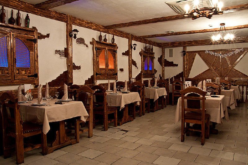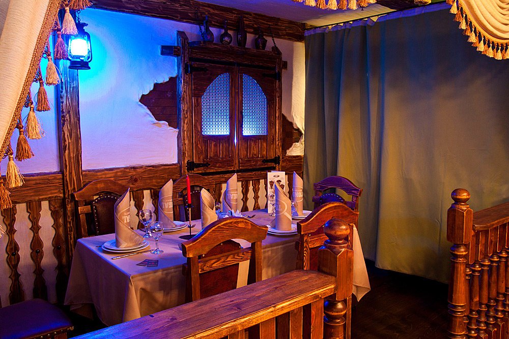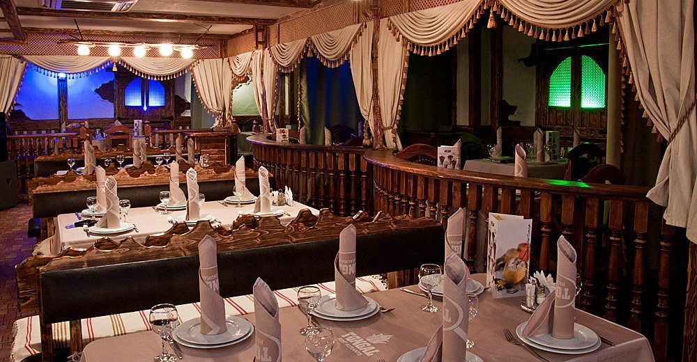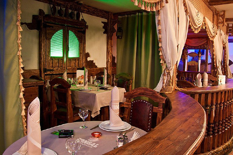 А ещё наше заведение работает как шашлычная, стейк-хаус, фрэш-бар, чайхана и караоке-бар.